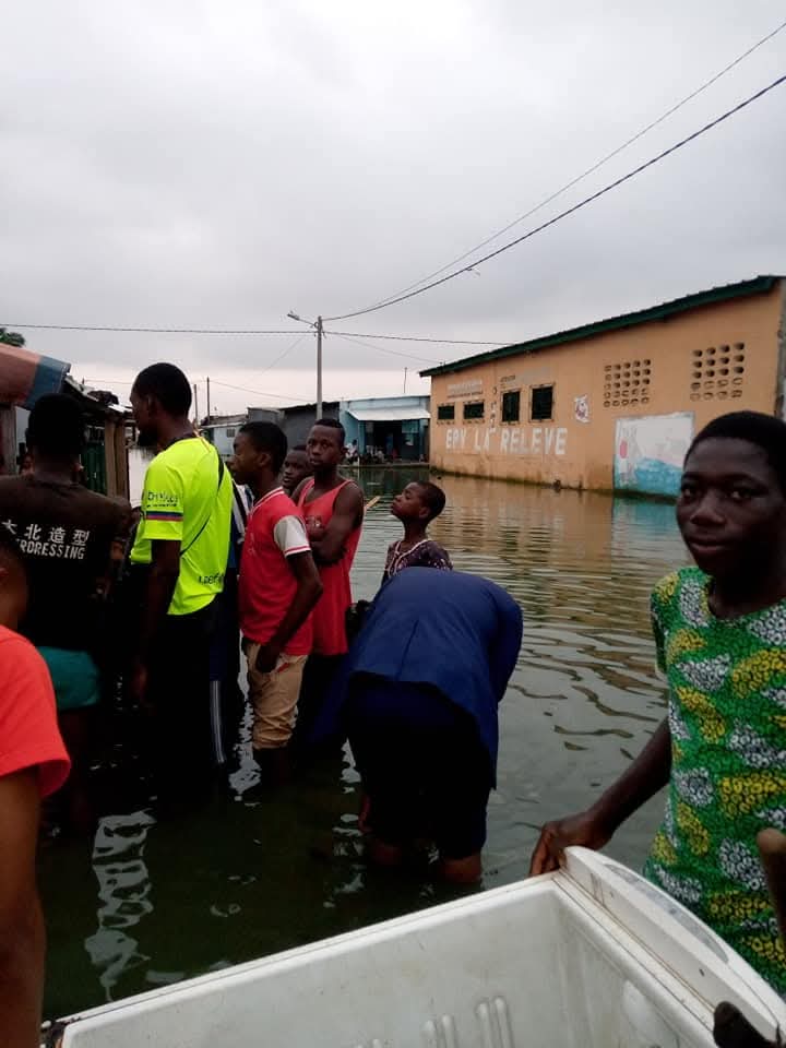 Distribution de vivres aux sinistrés des inondations de la Commune